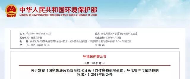 關(guān)于發(fā)布《國(guó)家先進(jìn)污染防治技術(shù)目錄(固體廢物處理處置、環(huán)境噪聲與振動(dòng)控制領(lǐng)域)》2017年的公告
