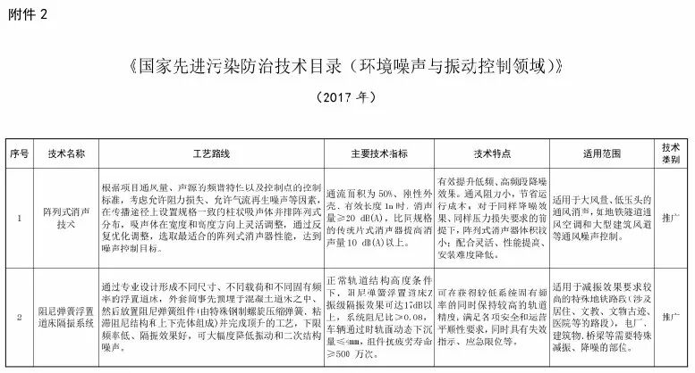2.《國(guó)家先進(jìn)污染防治技術(shù)目錄(環(huán)境噪聲與振動(dòng)控制領(lǐng)域)》(2017年)