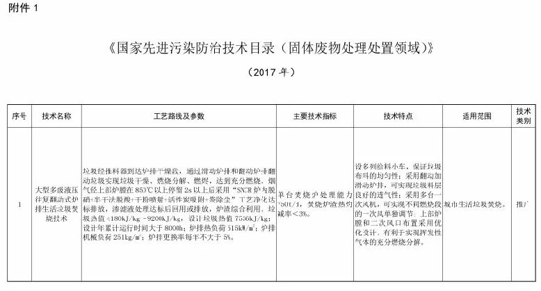1.《國(guó)家先進(jìn)污染防治技術(shù)目錄(固體廢物處理處置領(lǐng)域)》(2017年)