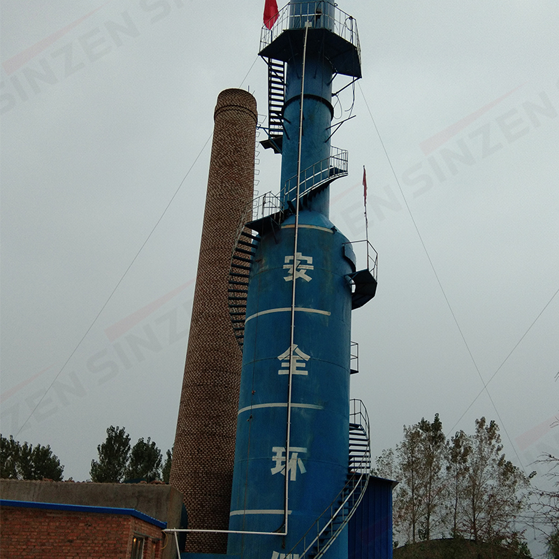 脫硫塔主要由筒體,噴霧裝置、篩板、脫水除霧裝置、溢水孔、清理孔等組成,其工作原理是:含煙塵及硫氧化物的煙氣流通過進口煙道進入筒體,含有[OH-]離子的堿性水分別從脫硫塔上中下部由螺旋噴嘴噴出,形成與煙氣成逆向的多排高速霧化水幕,增加了煙塵硫氧化物與水的碰撞概率,并充分利用霧化液滴的速度來造成很高的氣液相對速度,以保證除塵和脫硫效果。同時氣體經過篩板時對篩板上的液層產生鼓泡作用,增加了氣液傳質的表面積和湍動狀態,提高了傳質速率,二氧化硫與堿液發生氣液交換,進一步提高了脫硫效果。脫硫生成物隨水流到脫硫塔底部,從溢水孔排走,在筒體底部封底并設有水封槽以防止煙氣從底部泄漏,備有清理孔便于進行筒體底部清理。脫硫后廢水由底部溢流孔排出進入沉淀池,沉淀中和再生,循環使用。凈化后的氣體,通過筒體上部經除霧后引出,從而達到除塵脫硫目的。
