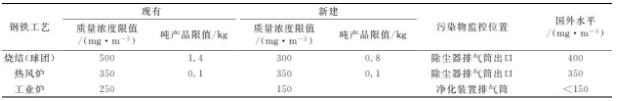 表1 《鋼鐵工業(yè)大氣污染物排放標(biāo)準(zhǔn)》(征求意見稿)氮氧化物排放限值