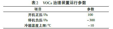 老罐區苯罐采用江蘇金門能源裝備有限公司設計、制造的JM - VRECS - CD/AD - 100 型VOCs 治理裝置,冷凝+ 吸附集成工藝,裝置主要參數如表1。