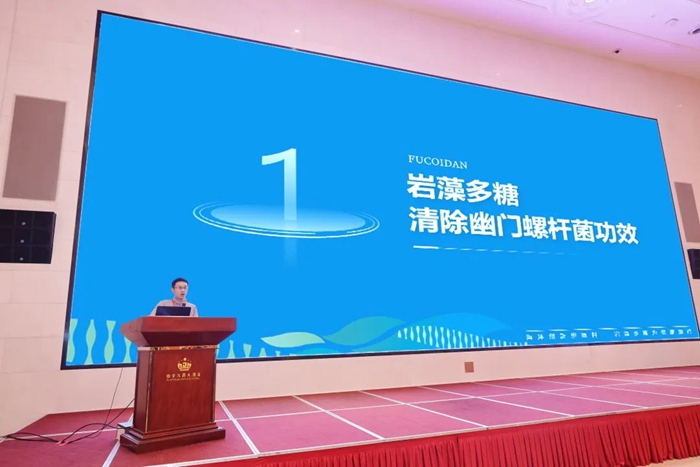 此次大會,明月海藻生物健康科技集團副總裁、海藻活性物質(zhì)國家重點實驗室-巖藻多糖研究室主任孫占一應邀參加未來功能食品專場演講,分享《巖藻多糖 保胃健康 腸享生活》。從巖藻多糖在胃腸道健康領域的功效研究著手,講述巖藻多糖帶來一種全新的胃腸道健康解決方案,特別是備受關注的去除幽門螺桿菌解決方案,為客戶提供安心且高效的清幽新選擇。