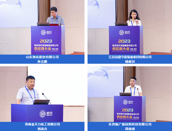 山東海化股份有限公司孫言鵬、江蘇高捷節(jié)能裝備集團(tuán)有限公司姚岷民、青州金天力化工有限公司韓濤吉、東營(yíng)臨廣新材料科技有限公司周南南幾位供應(yīng)商代表上臺(tái)分享“他們和明月的故事”。通過他們的講述,讓大家全方位、多角度地了解了一個(gè)充滿情懷與溫度的多彩明月。