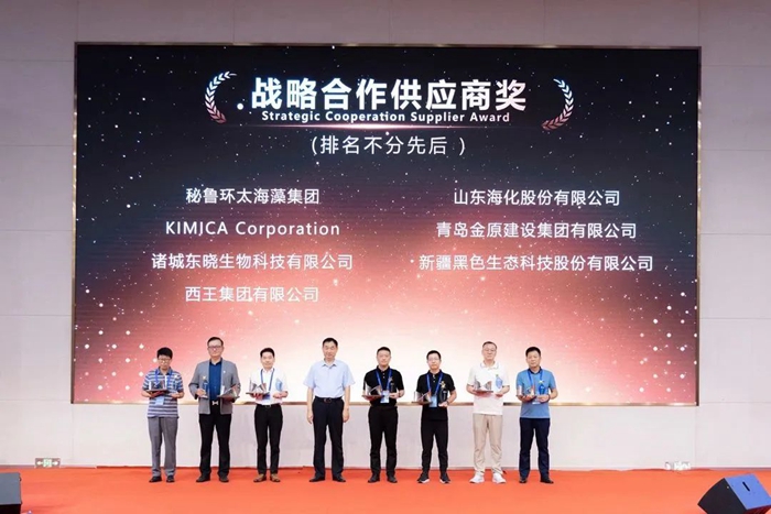 青島明月海藻集團(tuán)黨委書記、董事局主席張國(guó)防為“戰(zhàn)略合作供應(yīng)商獎(jiǎng)”獲獎(jiǎng)?wù)哳C獎(jiǎng)