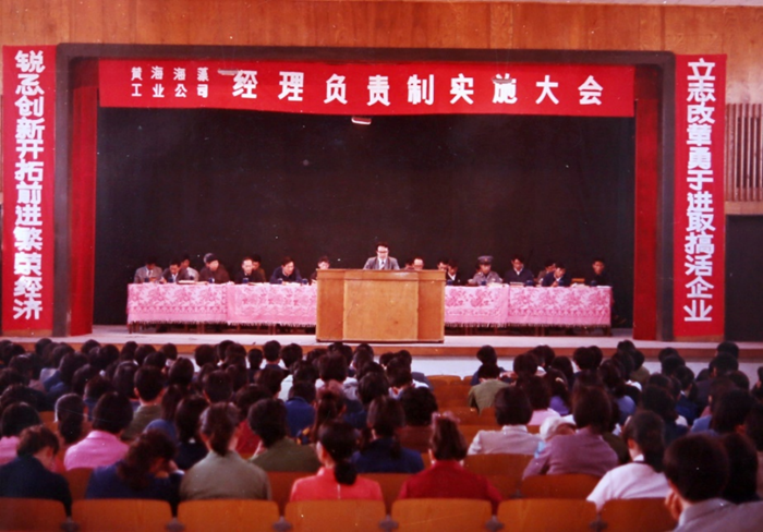 1985年10月,黃海海藻工業(yè)公司經(jīng)理負(fù)責(zé)制實(shí)施大會,時(shí)任經(jīng)理苗深義