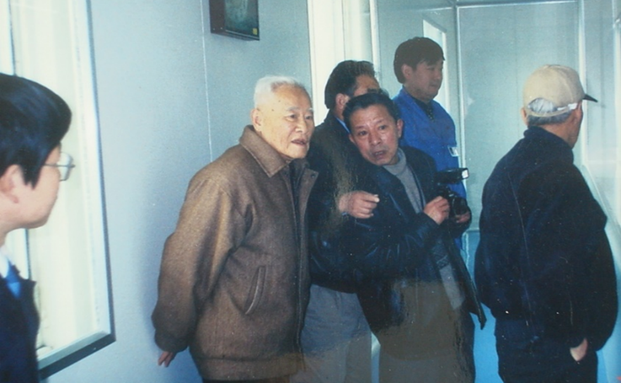 2000年3月23日,曾呈奎院士(左二)參觀公司生產(chǎn)車間