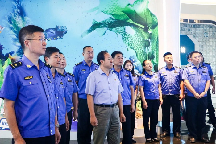 為積極探索新時(shí)期黨建發(fā)展新路徑,加強(qiáng)黨組織之間資源共享,優(yōu)勢(shì)互補(bǔ),9月25日,明月海藻集團(tuán)與青島西海岸新區(qū)綜合行政執(zhí)法局直屬四中隊(duì)在明月海藻世界景區(qū)開展“黨建聯(lián)建聚合力 共研共建促發(fā)展 ”活動(dòng),集團(tuán)黨工群團(tuán)中心主任封安波、健康科技黨支部書記劉振峰參加接待。