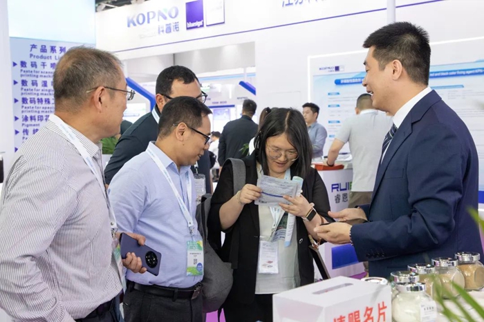 明月此次展出了四大系列印花糊料產(chǎn)品:海藻酸鈉活性印花糊料、分散印花糊料、仿蠟印花糊料,以及全新升級(jí)的數(shù)碼印花糊料系列,涵蓋了從傳統(tǒng)印花到前沿?cái)?shù)碼技術(shù)的多種應(yīng)用場景。值得一提的是,明月全系列產(chǎn)品已通過OEKO-TEX標(biāo)準(zhǔn)檢測(cè),綠色環(huán)保、安全無憂。其中,明月數(shù)碼印花糊料系列新產(chǎn)品憑借高穩(wěn)定性、優(yōu)異印花表現(xiàn)及環(huán)保性能成為現(xiàn)場焦點(diǎn),吸引眾多客戶深入咨詢,展現(xiàn)了數(shù)碼印花作為行業(yè)發(fā)展新趨勢(shì)的強(qiáng)勁勢(shì)能。