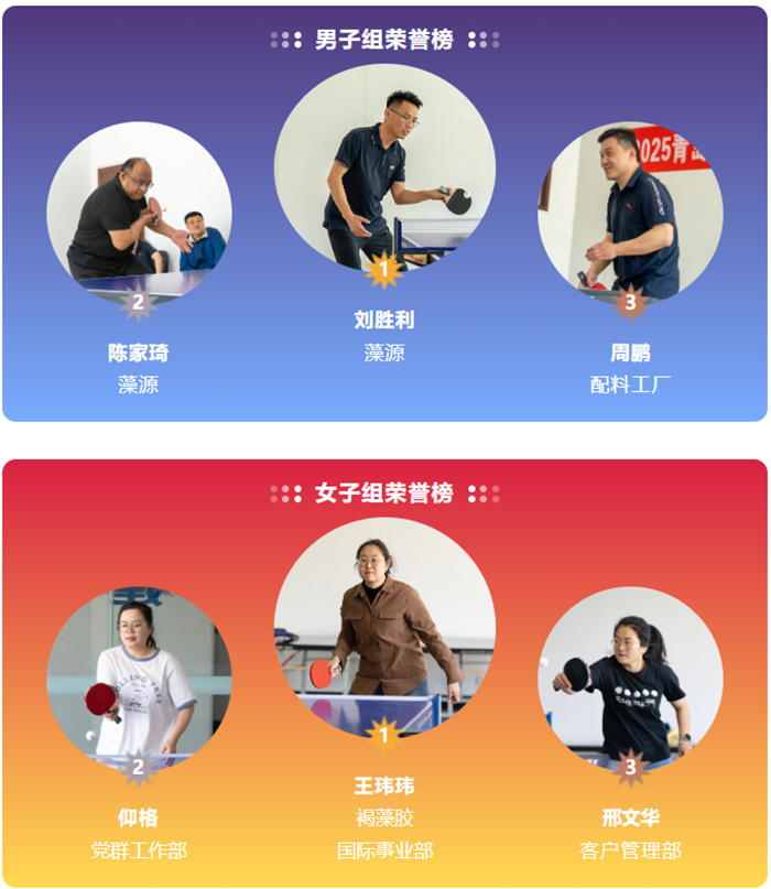 4月28日,集團辦公大樓一樓及五樓乒乓球活動室內(nèi)賽事氛圍熱烈。為確保公平公正,本次比賽特邀請區(qū)總工會工人文化宮協(xié)辦,并由專業(yè)裁判全程執(zhí)裁。男子組、女子組單打比賽在此拉開帷幕,數(shù)十名職工揮拍上陣。賽場上,選手們發(fā)球精準(zhǔn)、扣殺凌厲,直拍與橫拍的較量、攻守轉(zhuǎn)換間盡顯精湛球技,引得觀眾陣陣喝彩。決賽階段,選手們更是克服種種困難,以酣暢淋漓的鏖戰(zhàn)展現(xiàn)頑強斗志。最終,經(jīng)過多輪激烈角逐,男子組冠軍由藻源國內(nèi)事業(yè)部劉勝利斬獲,女子組冠軍則由褐藻膠國際事業(yè)部王瑋瑋摘得。