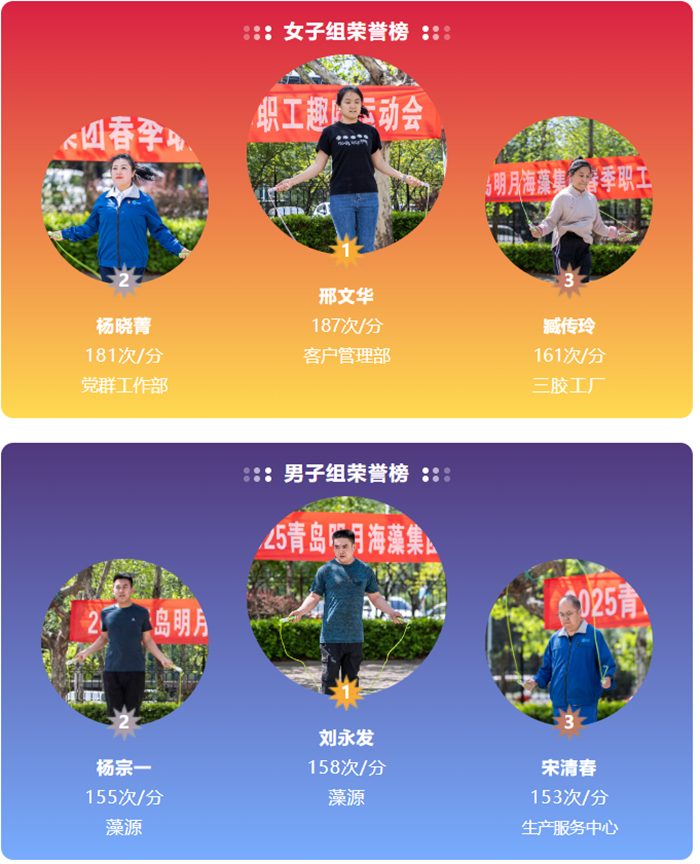 緊隨拔河比賽之后的是跳繩速度賽,男子組、女子組選手在1分鐘內(nèi)展開激烈角逐。賽場上,選手們身姿矯健,跳繩翻飛如蝶,現(xiàn)場歡呼不斷。最終,男子組以158次/分鐘的成績問鼎冠軍,女子組則以187次/分鐘的優(yōu)異成績拔得頭籌。