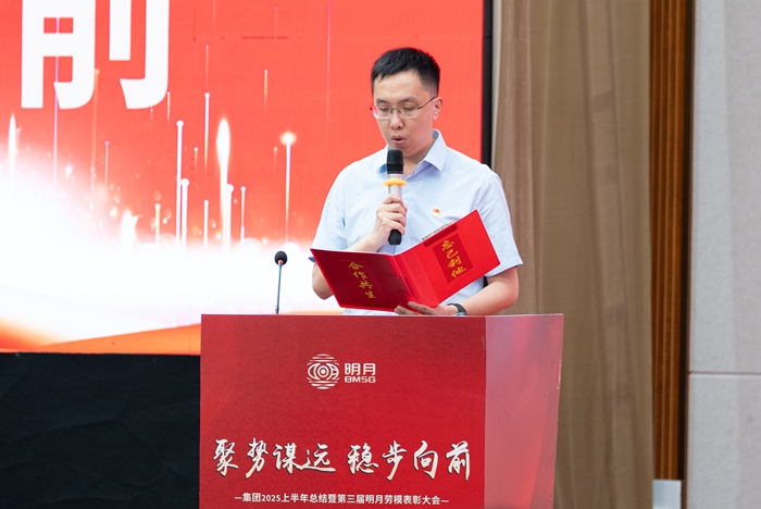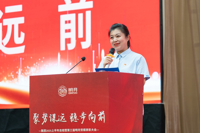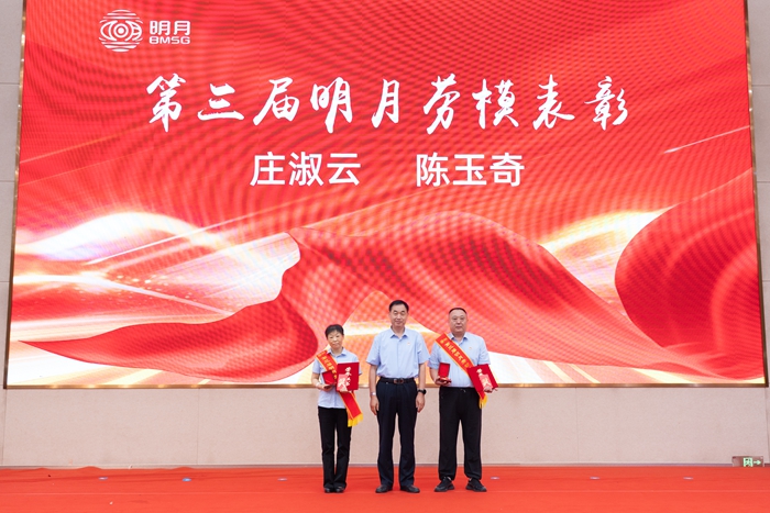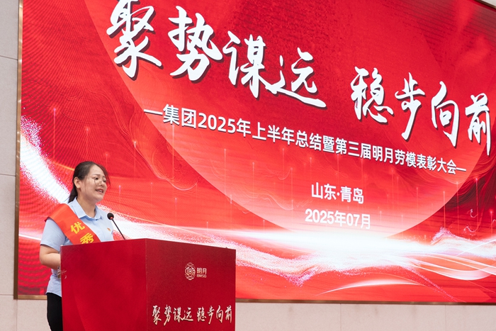 集團(tuán)工會(huì)主席楊曉菁宣讀《中共青島明月海藻集團(tuán)有限公司委員會(huì)、青島明月海藻集團(tuán)有限公司工會(huì)委員會(huì)關(guān)于表彰第三屆明月勞動(dòng)模范的決定》。勞模主題視頻《平凡之路,匠心筑夢(mèng)》、《堅(jiān)守如磐,微光成炬》生動(dòng)展現(xiàn)了莊淑云、陳玉奇兩位第三屆明月勞模數(shù)十年如一日的默默堅(jiān)守,以點(diǎn)滴微光匯聚創(chuàng)新力量,在平凡崗位上追求極致的“工匠精神”。陳玉奇代表勞模發(fā)言,表達(dá)了將繼續(xù)扎根崗位、銳意創(chuàng)新、甘于奉獻(xiàn),為集團(tuán)“聚勢(shì)謀遠(yuǎn)”貢獻(xiàn)全部力量的堅(jiān)定決心。