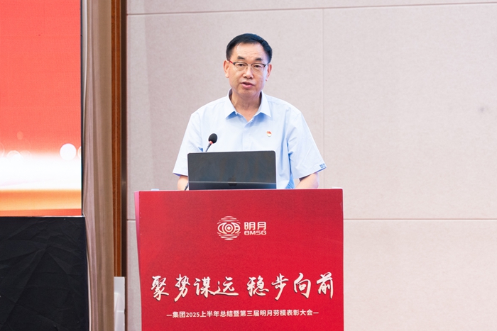 集團(tuán)黨委副書記、總裁劉兆志向大會(huì)作《2025年上半年工作總結(jié)報(bào)告》。他指出,面對(duì)嚴(yán)峻市場(chǎng)環(huán)境,集團(tuán)精準(zhǔn)研判,以“聚勢(shì)”的戰(zhàn)略定力整合資源、凝聚共識(shí),以“謀遠(yuǎn)”的創(chuàng)新視野優(yōu)化布局、蓄能未來(lái)。明月人圍繞年度經(jīng)營(yíng)目標(biāo),聚焦主業(yè),深化變革,在“穩(wěn)”字上下功夫,在“進(jìn)”字上求實(shí)效,推動(dòng)市場(chǎng)根基持續(xù)鞏固,創(chuàng)新動(dòng)力顯著增強(qiáng),運(yùn)營(yíng)效能穩(wěn)步提升,各項(xiàng)關(guān)鍵經(jīng)營(yíng)指標(biāo)有力印證了集團(tuán)發(fā)展“穩(wěn)中有進(jìn)、進(jìn)中提質(zhì)”的良好態(tài)勢(shì)。