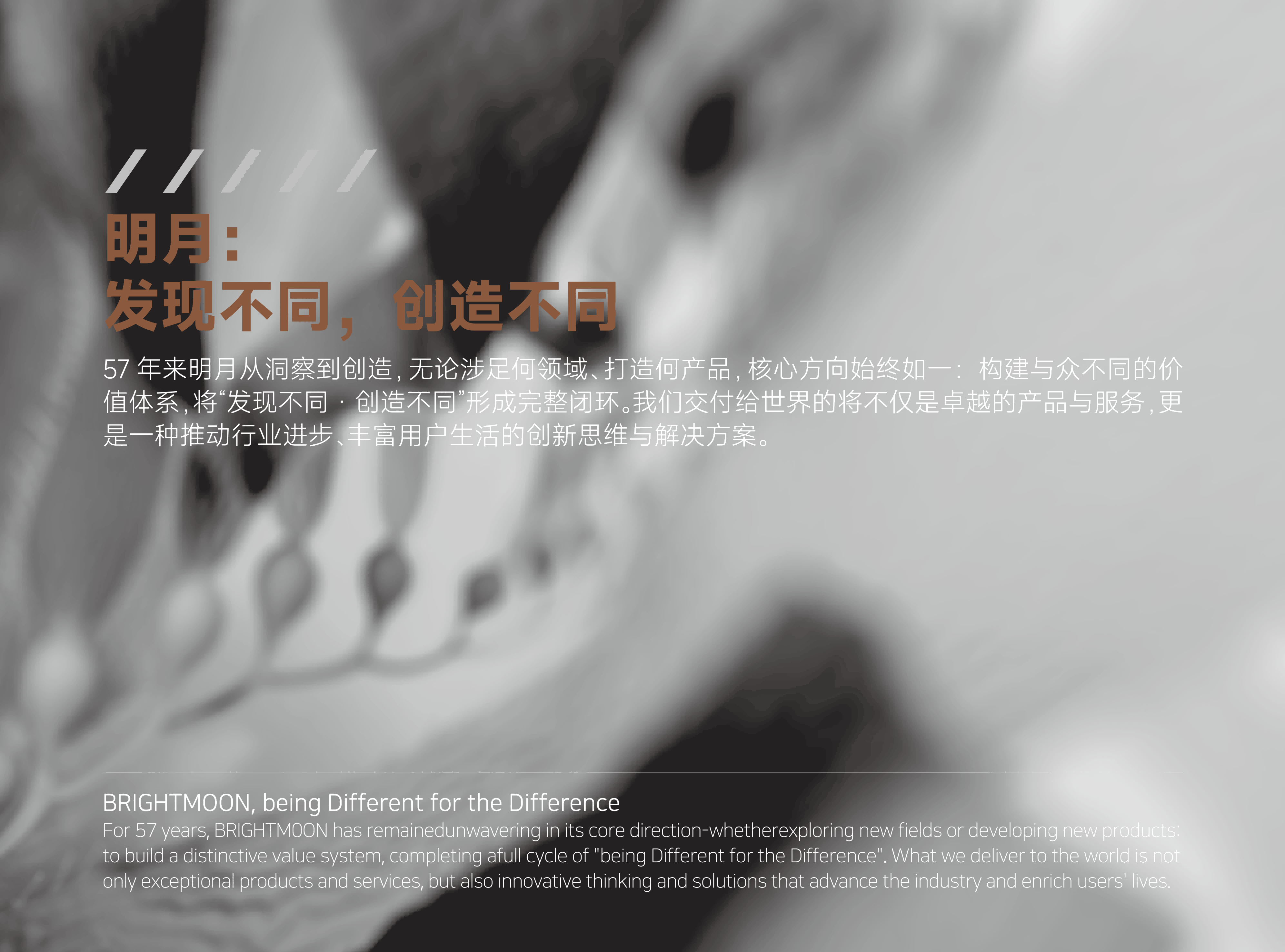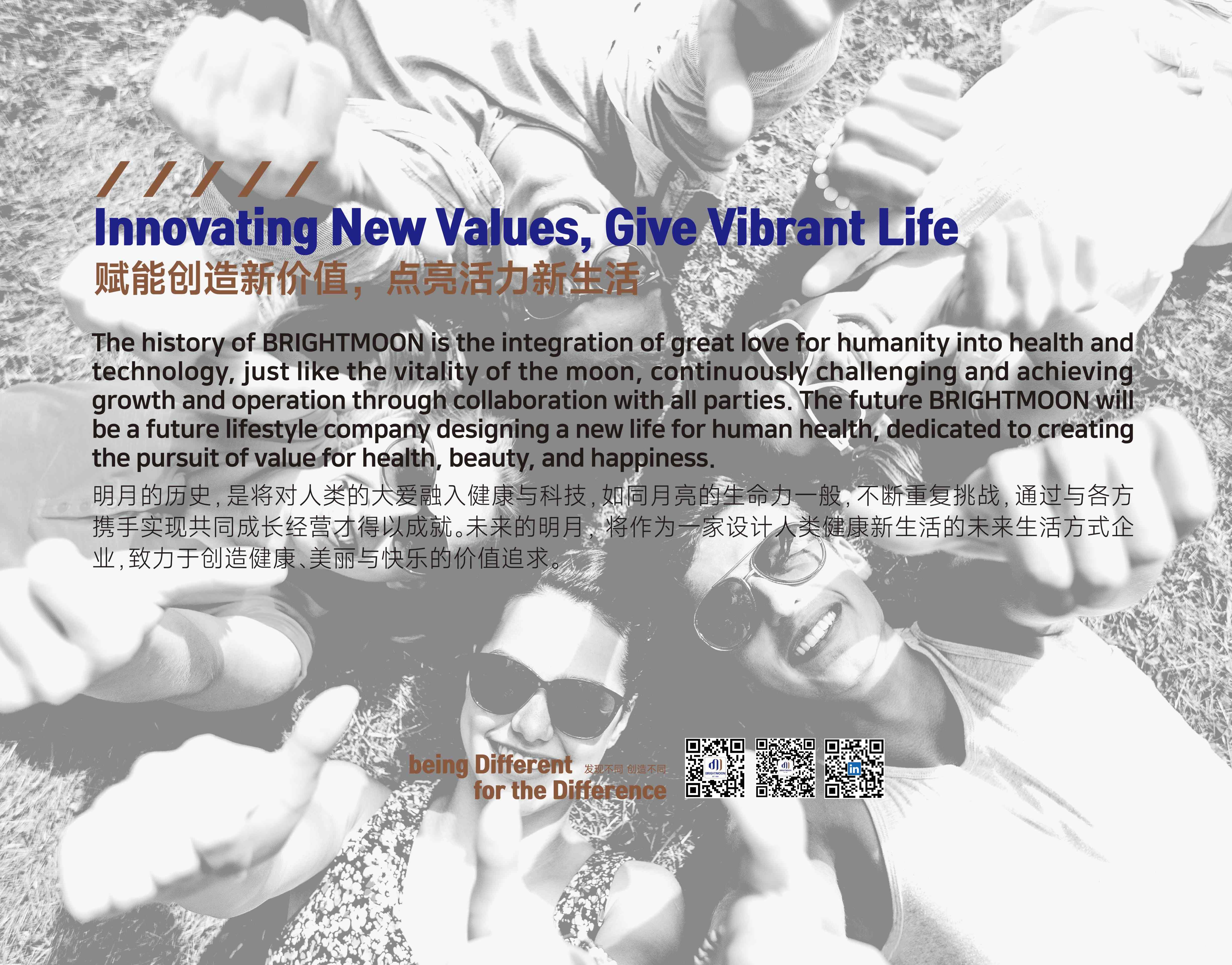 明月始終堅(jiān)信,企業(yè)的成長(zhǎng)不僅源于技術(shù)與產(chǎn)品,更源于文化的力量。58年的發(fā)展歷程中,我們不斷傳承與創(chuàng)新,凝聚出獨(dú)特的明月精神——以利他與信賴為基礎(chǔ),以創(chuàng)新與融合為驅(qū)動(dòng),將對(duì)人類健康的關(guān)注融入每一次技術(shù)突破與產(chǎn)品表達(dá)之中?!百x能創(chuàng)造新價(jià)值,點(diǎn)亮活力新生活”,不僅是使命,更是明月持續(xù)前行的內(nèi)在動(dòng)力。從海洋出發(fā),我們不僅提供產(chǎn)品,更致力于創(chuàng)造健康、美麗與快樂(lè)的價(jià)值追求。