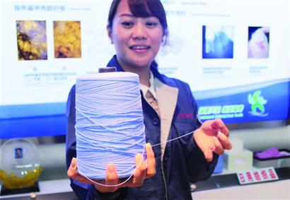 當(dāng)記者來到位于黃島區(qū)海濱一路的明月海藻集團(tuán)時,明月海藻技術(shù)中心主任李可昌向記者展示了手中的一塊“紗布”。雖然看上去這塊“紗布”與普通紗布沒有區(qū)別,但當(dāng)其接觸生理鹽水之后,卻發(fā)生了奇妙的變化,原先蓬松的“棉絮”逐漸凝結(jié)。較終變成了一塊類似明膠的固體。