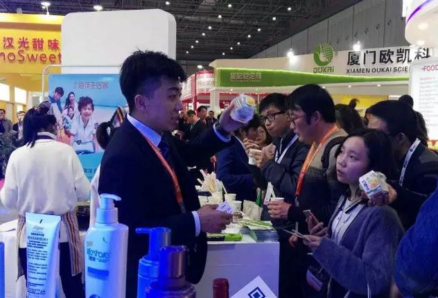 本次展會明月集團進行了新的品牌展示活動,而且進行了健康產(chǎn)品的體驗活動,包括海藻酸鈉制作的膳食纖維代餐凍和含有海帶粉的褐藻面。同時舉辦了主題為海藻活性物質(zhì)在功能食品中的應(yīng)用研究進展的新產(chǎn)品新技術(shù)發(fā)布會,介紹了微膠囊新技術(shù)、海藻酸鈣新配料和藻酸鹽的活性及應(yīng)用。