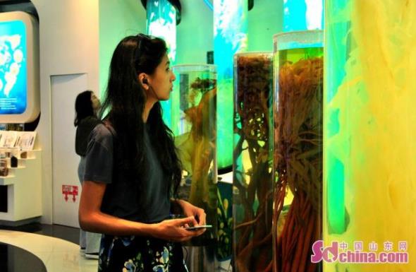 在海藻生物產(chǎn)業(yè)館,展示了海藻在日常食品、藥品、保健品、日化用品、護(hù)膚品、海藻有機(jī)肥料、生物醫(yī)用材料等多個(gè)方面的應(yīng)用,通過(guò)實(shí)驗(yàn)演示為采訪團(tuán)成員解開(kāi)它的“真身”,為他們帶來(lái)腦洞大開(kāi)的海藻新生活之旅。