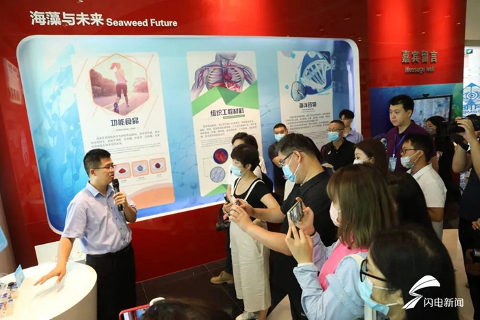 青島明月五彩文旅集團(tuán)總裁尹杰及青島明月海藻集團(tuán)總裁助理、海藻活性物質(zhì)國家重點(diǎn)實(shí)驗(yàn)室副主任張德蒙博士接受此次采訪并分別向“港口雄開萬里流”網(wǎng)絡(luò)主題采訪團(tuán)記者介紹相關(guān)情況。