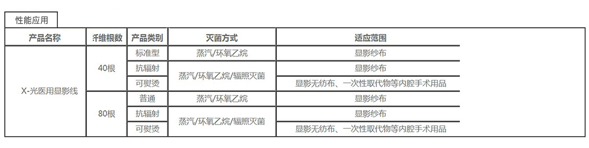 “潔靈絲”X-光醫(yī)用顯影線是通過采用先進的材料加工技術(shù)制備成型,由若干高分子長絲包覆后形成,其粗細度可根據(jù)用戶需要進行調(diào)整。本公司生產(chǎn)的“X-光醫(yī)用顯影線”的性能及加工工藝嚴格按照歐盟標準,產(chǎn)品具有很高的柔軟性及很好的物理機械性能,各項指標達到國際先進水平,可以與棉紗線一起織造后制備X-光顯影紗布,也可以通過加熱或超聲波方法與各種醫(yī)用織物粘合。